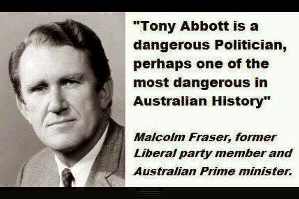 I didn’t realize that Malcolm Fraser had made that very astute observation on Abbott. Coming from a former Liberal Prime Minister we would have been well advised to have listened to him not that we had much choice in him becoming leader of the Liberals by that one fatal vote.